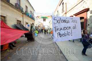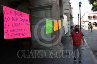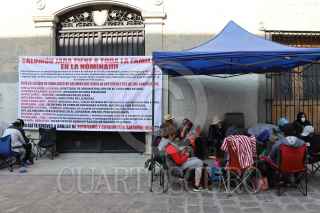 OAXACA, OAXACA, 12FEBRERO2025.- Ex trabajadores de gobierno mantienen un plantón indefinido al rededor del Palacio de Gobierno de Oaxaca, para exigir su reinstalación y garantizar sus derechos laborales. Más de 600 ex trabajadores de los mil 433 afectados por el Decreto 24 que suprimió bases de trabajo, permanecen en la incertidumbre, por lo que han cerrado el recinto gubernamental. FOTO: CAROLINA JIMÉNEZ/CUARTOSCURO.COM