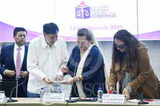 CIUDAD DE MÉXICO, 12FEBRERO2025.- Gerardo Fernández Noroña, presidente de la mesa directiva del Senado de la República, y Guadalupe Taddei, consejera presidenta del Instituto Nacional Electoral, encabezaron el acto protocolario de entrega-recepción de los listados de las candidaturas para el Proceso Electoral Extraordinario para la elección de diversos cargos del Poder Judicial de la Federación 2024-2025. FOTO: MARIO JASSO/CUARTOSCURO.COM