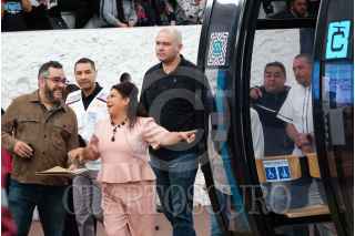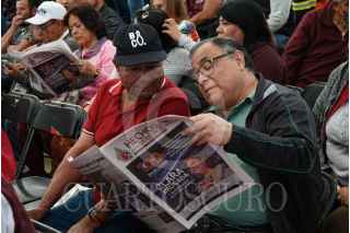 CIUDAD DE MÉXICO, 13FEBTERO2025.- Vecinos de la alcaldía Magdalena Contreras leen la gaceta "Hechos por tus Derechos", en durante la Presentación del Cablebús en esta demarcación realizada en el Módulo Tierra Unida. FOTO: GRACIELA LÓPEZ/CUARTOSCURO.COM