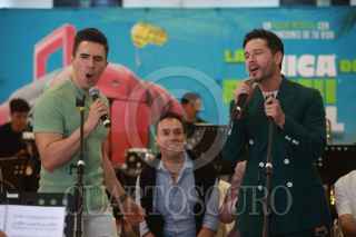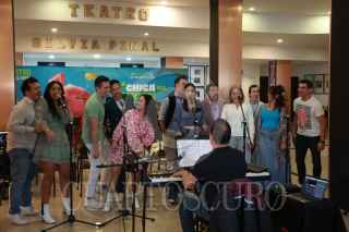 CIUDAD DE MÉXICO, 13FEBRERO2025. Juan Carlos Velandia, Juan Solo, Laura Luz y María Filippini durante el sitzprobe donde los actores de la puesta en escena “La chica del bikini azul” y la orquesta se encuentren por primera vez. El musical próximo a estrenarse en el Teatro Silvia Pinal es una producción que cuenta con distintos temas temas que tiene como hilo conductor los interpretados por el ídolo Luis Miguel, en voz de los actores de la compañía. FOTO: EDGAR NEGRETE LIRA/CUARTOSCURO.COM