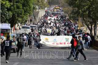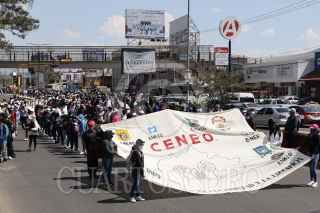 SANTA LUCÍA DEL CAMINO, OAXACA, 13FEBRERO2025.- Decenas de estudiantes que integran las Coordinadora Estudiantil Normalista del Estado de Oaxaca (CENEO) marcharon hacia el zócalo de la capital de Oaxaca para hacer entrega de su pliego de demandas 2025. Los manifestantes que provienen de las 11 escuelas normales con que cuenta el estado, pidieron al gobierno iniciar el diálogo en los próximos 10 días, de lo contrario amagaron con iniciar una jornada de movilizaciones. FOTO: CAROLINA JIMÉNEZ/CUARTOSCURO.COM