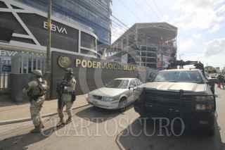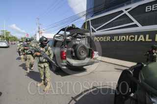 VIILLAHERMOSA, TABASCO, 14FEBRERO2025.- Elementos del Ejército y personal antibombas establecieron un perímetro de seguridad en las instalaciones del Tribunal Laboral Federal de Asuntos Individuales, en Villahermosa, luego de que aventaran un paquete presuntamente con explosivos. FOTO: LUIS LÓPEZ/CUARTOSCURO.COM