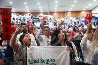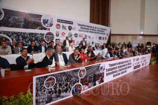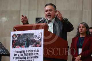 CIUDAD DE MÉXICO, 15FEBRERO2025. Líderes sindicales durante el “Encuentro Nacional de las y los Trabajadores Organizados de México, Defendiendo y Construyendo Nuevos Derechos Laborales", en el auditorio del Centro Médico Siglo XXI. FOTO: EDGAR NEGRETE LIRA/CUARTOSCURO.COM