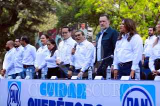QUERÉTARO, QUERÉTARO, 15FEBRERO2025.- En un evento llevado a cabo en la Alameda, Martin Arango presidente del comité directivo estatal del PAN, tomó protesta a los secretarios que formaran parte de la estructura del comité. Asistió el gobernador Mauricio Kuri como invitado especial. FOTO: CÉSAR GÓMEZ/CUARTOSCURO.COM