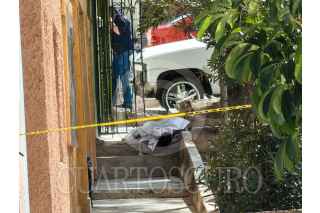 GUADALUPE, ZACATECAS, 15FEBRERO2025.- Dios hombres fueron asesinados en un ataque armado en la zona centro de este municipio. Alrededor de las 15:00 hrs llegaron reportes al 911 de detonaciones de arma de fuego sobre la calle San Pedro, en la colonia centro. Elementos policiacos llegaron al lugar y fueron localizados dos hombres con heridas de arma de fuego, una de ellos en medio de la valla y otro más sobre la banqueta de un domicilio. A la llegada de paramédicos de Protección Civil municipal las víctimas ya no contaban con signos vitales. Trascendió que una de las víctimas era el dueño de una cancha de “rebote” en la zona y el otro hombre era un vendedor de nopalitos, quien presuntamente habría sido alcanzado por las balas del ataque. La zona fue acordonada para que peritos y policías de investigación realizaran los trabajos de ley. FOTO: GENARO NATERA /CUARTOSCURO.COM