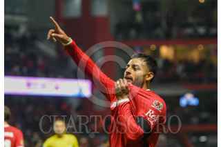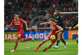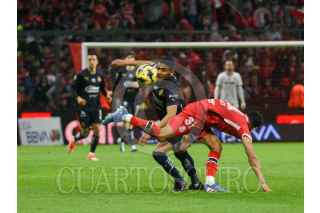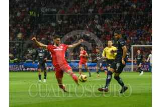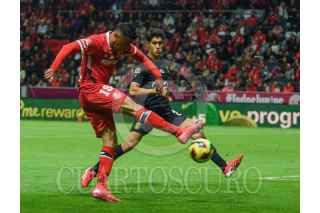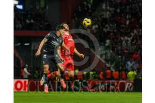 TOLUCA, ESTADO DE MÉXICO, 15FEBRERO2025.- Marcel Ruiz medio Los Diablos de Toluca y Luis Romo medio de las Chivas de Guadalajara, en el partido correspondiente a la jornada 7 del Torneo Clausura 2025 de la Liga MX, terminando el encuentro con un marcador 2–1. FOTO: CRISANTA ESPINOSA AGUILAR /CUARTOSCURO.COM
