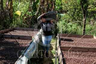 ALDAMA, CHIAPAS, 16FEBRERO2025.- El territorio de Los Altos de Chiapas se ha convertido en un punto reconocido en el mundo del café de especialidad a nivel internacional, por la calidad de sus granos y resultados en taza. En el camino diferentes familias de la región se han beneficiado en conocimiento y economía a partir del buen trato de la tierra y la fruta cosechada de las plantas del café. Hoy en día no solo tienen la opción de vender su café a precios bajos a los llamados coyotes, que son quienes con transporte sacan los granos de las comunidades y los venden a la industria del café comercial. Hoy en día diferentes formas comunitarias de aprendizaje y producción, dan grandes posibilidades a los caficultores de vender por arriba de un 30?l valor que dictamina la bolsa internacional del denominado oro verde a un comercio de alta calidad a nivel estatal, nacional e internacional; como una apuesta en contra el sistema de la industria alimentaria que desfavorece a quien trabaja, vive y cuida la tierra y los alimentos antes de que lleguen a las mesas de los consumidores. La especialización e intercambio de conocimientos entre productores y vendedores ha permitido una mejora en las cosechas año con año en diferentes proyectos desarrollados en territorio chiapaneco. FOTO: ISABEL MATEOS/CUARTOSCURO.COM
