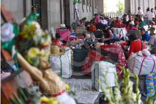TOLUCA, ESTADO DE MÉXICO, 16FEBRERO2025.- Cientos de peregrinos arriban a la capital mexiquense como parte de la LXXXVII Peregrinación Diocesana al Tepeyac de la Arquidiócesis de Toluca, provenientes de diversos municipios este día descansan en la zona centro y mañana lunes a muy temprana hora retoman su camino después de escuchar misa y ser bendecidos en la Catedral de Toluca. FOTO: CRISANTA ESPINOSA AGUILAR /CUARTOSCURO.COM