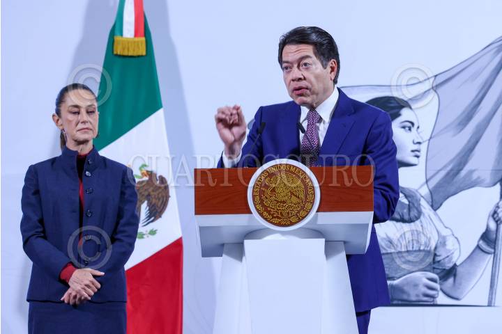 CIUDAD DE MÉXICO, 17FEBRERO2025.- Mario Delgado, habla sobre el programa "Bachillerato Nacional" el cuál elimina el examen de ingreso a la educación media superior, lo que antes se llamaba Comipens, por lo que los jóvenes podrán seleccionar libremente el centro de estudios de su elección, aunque en este programa no se encuentran el IPN y la UNAM, esto durante la mañanera. FOTO: MOISÉS PABLO/CUARTOSCURO.COM