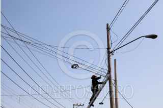 TLALNEPANTLA, EDOMEX, 17FEBRERO2025.- Un bombero del Estado de México retira un cable de luz que fue arrancando por un tráiler. FOTO: DANIEL AUGUSTO/ CUARTOSCURO.COM