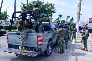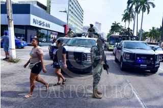 ACAPULCO, GUERRERO, 17FEBRERO2025.- Agentes de la Marina y policías, se movilizaron en la avenida Costera de Acapulco, luego de que hombres armados realizarán disparos en un sitio se taxis, en el lugar no hubo lesionados. Con este son tres los hechos en los últimos días en que hombres armados realizan disparos al aire en lugares públicos causando temor entre las personas que se encuentran en los lugares donde ocurren, hasta el momento las autoridades no han identificado a las responsables de estos ataques. FOTO: CARLOS ALBERTO CARBAJAL/CUARTOCURO.COM