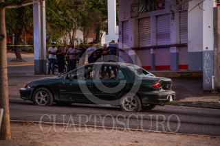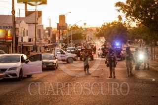 CULIACÁN, SINALOA, 17FEBRERO2025.- Un enfrentamiento y persecución a balazos entre civiles armados al sur de Culiacán en el sector Barrancos dejó un saldo de dos personas con equipo táctico sin vida y varios civiles heridos. Además, se aseguraron más de cinco vehículos uno de ellos blindados, así como dos armas largas y una corta. además dos vehículos civiles quedaron en el fuego cruzado, una doble rodado y un vehículo compacto de color verde, los enfrentamientos continúan aún con la visita de Harfuch y el Secretario de la Defensa Nacional Ricardo Trevilla Trejo el viernes pasado. FOTO: JOSÉ BETANZOS/CUARTOSCURO.COM