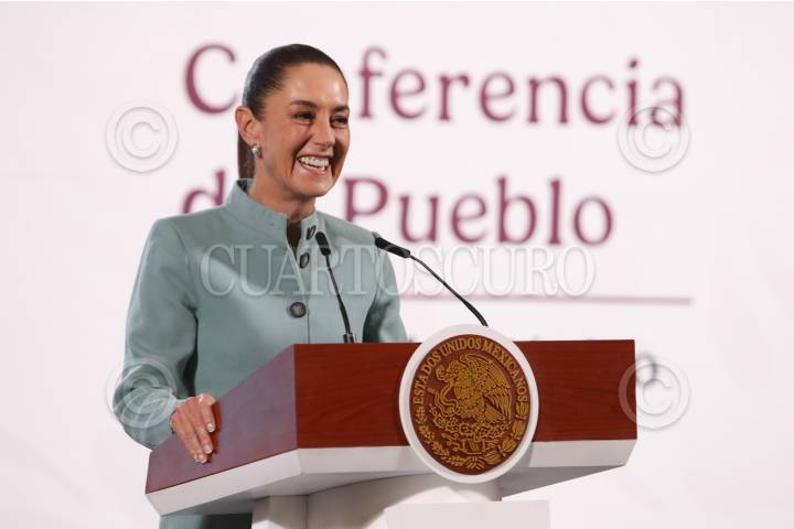 CIUDAD DE MÉXICO, 18FEBRERO2025.- Claudia Sheinbaum, presidenta de México, respondiendo preguntas en el Martes de Salud en la Conferencia del Pueblo. FOTO: GUSTAVO ALBERTO /CUARTOSCURO