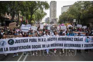 CIUDAD DE MÉXICO, 18FEBRERO2025.- Tras el asesinato del médico veterinario Héctor Hernández Cañas el día de hoy colegas marcharon desde el Palacio de Bellas Artes hasta las inmediaciones de la Cámara de Senadores, para exigirle a las autoridades que garanticen su actividad profesional. Los organizadores de esta convocatoria la denominaron “Marcha Nacional por la Dignificación de la Medicina Veterinaria y Zootecnista”, ya que se llevó a cabo en varios estados del país, y es que señalan que se han incrementado los ataques por personas que no están de acuerdo con sus praxis o los extorsionan. FOTO: ANDREA MURCIA/CUARTOSCURO.COM