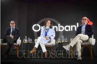 CIUDAD DE MÉXICO, 18FEBRERO2025.- Ana Botín, presidenta de Banco Santander, ofreció conferencia de prensa para anunciar la nueva plataforma digital "Openbank México" con el que refuerza la inversión de 2 mil millones de dólares en México que el grupo bancario confirmó luego de la reunión que sostuvo ayer con Claudia Sheinbaum, presidenta de México. La acompañan: Felipe García, director general de Santander México, y Matías Nuñez, director general de Open Bank. FOTO: MARIO JASSO/CUARTOSCURO.COM