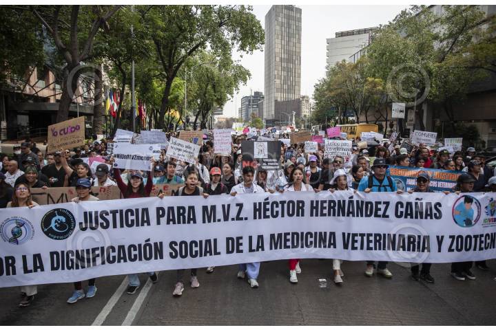 CIUDAD DE MÉXICO, 18FEBRERO2025.- Tras el asesinato del médico veterinario Héctor Hernández Cañas el día de hoy colegas marcharon desde el Palacio de Bellas Artes hasta las inmediaciones de la Cámara de Senadores, para exigirle a las autoridades que garanticen su actividad profesional. Los organizadores de esta convocatoria la denominaron “Marcha Nacional por la Dignificación de la Medicina Veterinaria y Zootecnista”, ya que se llevó a cabo en varios estados del país, y es que señalan que se han incrementado los ataques por personas que no están de acuerdo con sus praxis o los extorsionan. FOTO: ANDREA MURCIA/CUARTOSCURO.COM