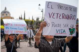TLAXCALA, TLAXCALA, 18FEBRERO2025.- Marcha nacional de veterinarios exigen alto a la violencia y respeto profesional. Cientos de médicos veterinarios y zootecnistas (MVZ) de todo el país se unieron hoy a la Marcha Nacional por la Dignificación de la Medicina Veterinaria y Zootecnia, que tuvo su réplica en las calles del centro histórico de Tlaxcala capital. La movilización responde al reciente asesinato de un MVZ en el Estado de México, presuntamente a manos de los dueños de un perro que no sobrevivió a una cirugía. FOTO: ALAÍN HERNÁNDEZ/CUARTOSCURO.COM