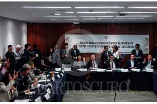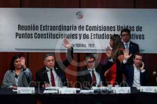 CIUDAD DE MÉXICO, 18FEBRERO2025.- María Guadalupe Chavira, secretaria de la Comisión de Estudios Legislativos del Senado; Enrique Inzunza Cázarez, presidente de la Comisión de Estudios Legislativos del Senado; Saúl Monreal Ávila, secretario de la Comisión de Puntos Constitucionales, y Ricardo Anaya, secretario de la Comisión de Puntos Constitucionales, encabezaron la reunión extraordinaria que ambas comisiones encabezaron en el Senado de la República para le discusión sobre las iniciativa enviadas por la presidenta Claudia Sheinbaum sobre nepotismo y reelección, por mencionar algunos. FOTO: GALO CAÑAS/CUARTOSCURO.COM