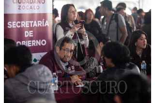 CIUDAD DE MÉXICO, 18FEBRERO2024.- César Cravioto Romero, secretario de gobierno durante los módulos de atención ciudadana en la plancha del Zócalo Capitalino donde decenas de personas de todas alcaldías acuden en busca de soluciones a sus problemas como vecinos. FOTO: ANDREA MURCIA/CUARTOSCURO.COM