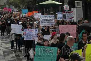 GUADALAJARA, JALISCO.- 18FEBRERO2025.- Médicos Veterinarios Zootecnistas de Jalisco, protestaron esta mañana en la explanada del Instituto Cultural cabañas y caminaron hacia Palacio de Gobierno para hacer llegar un escrito al poder Ejecutivo para que les den garantías al realizar sus labores, esto a causa de lo sucedido en la ciudad de México, donde Héctor Hernández Cañas fue asesinado por los dueños de una perrita a la que atendió y no pudo rescatar. FOTO : FERNANDO CARRANZA GARCIA / CUARTOSCURO.COM
