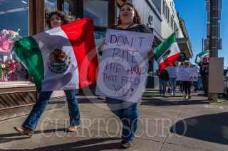 FORT BRAGG, CALIFORNIA, 20FEBRERO2025.- Familias inmigrantes marcharon el 8 de febrero por el centro de Fort Bragg en protesta por la ola de redadas migratorias de la administración Trump. FOTO: DAVID BACON/CUARTOSCURO.COM