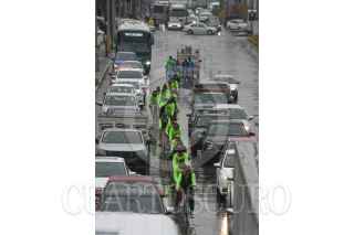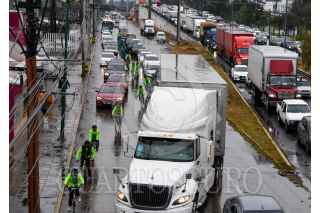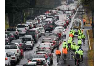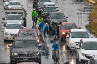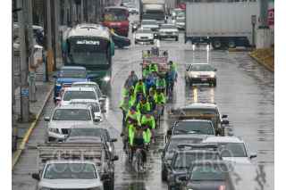 TOLUCA, ESTADO DE MÉXICO, 19FEBRERO2025.- Ciclistas que participan en la Peregrinación al Tepeyac tuvieron que sortear el caos vehicular que se vivió por varias horas en Paseo Tollocan a causa de un bloque de transportistas del estado de Hidalgo. FOTO: CRISANTA ESPINOSA AGUILAR /CUARTOSCURO.COM