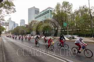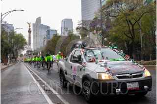 CIUDAD DE MÉXICO, 19FEBRERO2025.- Sobre avenida Reforma se observaron a cientos de peregrinos de Toluca cuando se dirigían en bicicletas rumbo a la Basílica de Guadalupe. Este arribo de guadalupanos es uno de los más concurridos del año. FOTO: MOISÉS PABLO/CUARTOSCURO.COM