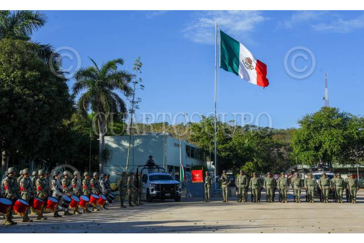 CAMPECHE, CAMPECHE, 19FEBRERO2025.- El Décimo Batallón de Infantería en Campeche conmemoró el 112 aniversario del Ejército Mexicano. En el evento se contó con la presencia de la Gobernadora Layda Sansores San Román y de autoridades estatales. FOTO: MICHAEL BALAM/CUARTOSCURO.COM