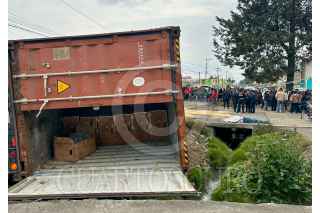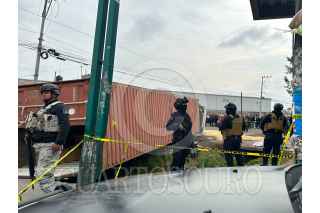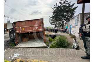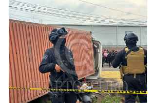 TOLUCA, ESTADO DE MÉXICO, 19FEBRERO2025.- Al menos una persona perdió la vida la registrarse la volcadura de un tráiler en Boulevard Aeropuerto y su cruce con la calle Juan Fernández Albarrán en la colonia de San Nicolás Tolentino, cuerpos de emergencia acudieron al lugar al ser reportado el accidente en el que se vieron involucrados dos estudiantes que viajaban en un mototaxi, quedando atrapados bajo la caja de carga, en donde lograron sacar a uno de ellos con vida y el otro murió en el lugar. FOTO: CRISANTA ESPINOSA AGUILAR /CUARTOSCURO.COM