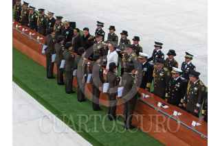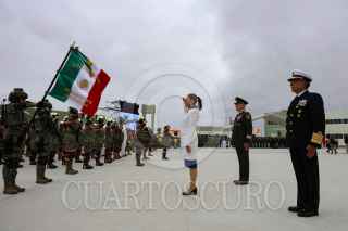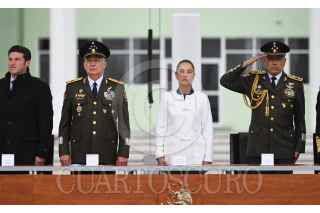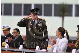 CERRALVO, NUEVO LEÓN, 19FEBRERO2025.- Claudia Sheinbaum, Presidenta de México, y Ricardo Trevilla Trejo, secretario de la Defensa Nacional, encabezaron el 112 aniversario del Día del Ejército Mexicano”, en cuya ceremonia se entregaron las instalaciones del 27/o Regimiento de Caballería Motorizado. También estuvo presente el gobernador de Nuevo León, Samuel García. FOTO: PRESIDENCIA/CUARTOSCURO.COM