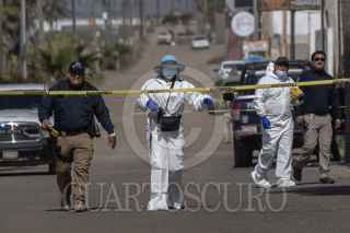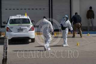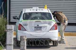 TIJUANA BAJA CALIFORNIA 19FEBRERO2025.- Una mujer fue asesinada poco antes de las 9 de la mañana, cuando se encontraba a bordo de un taxi libre junto a su hija, una menor de 14 años. Los hechos ocurrieron en el estacionamiento del Oxxo San Marino, ubicado en la carretera Escénica Rosarito a Rupertino, fraccionamiento San Marino, en el distrito Playas de Tijuana. Al llegar al lugar, los policías encontraron un taxi Nissan Versa de color blanco con franja verde, número económico 13713, con una mujer sin vida por lesiones de arma de fuego en el lado del conductor. Según la hija de la víctima de 14 años, momentos antes se encontraba con su madre, de nombre Rocio de 35 años, a bordo del taxi cuando un hombre de vestimenta oscura se les acercó y les disparó sin mediar palabra, huyendo a pie en dirección hacia el fraccionamiento Baja Malibu. Agentes de la Fiscalía General del Estado y Servicios Periciales quienes llegaron para procesar la escena, localizaron varios indicios balísticos en el lugar. Hasta el momento no se han reportado detenidos. FOTO: OMAR MARTÍNEZ CUARTOSCURO.COM