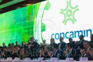 CIUDAD DE MÉXICO, 20FEBRERO2025.- Alejandro Malagón, presidente de la Concamin, ofrece un mensaje a los integrantes de la confederación, empresarios e integrantes del gobierno que asistieron al evento. FOTO: DANIEL AUGUSTO/ CUARTOSCURO.COM