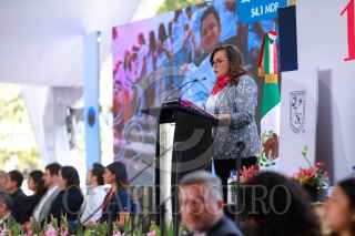 QUERÉTARO, QUERÉTARO, 20FEBRERO2025.- En la explanada de Rectoría, Silvia Amaya Llano rindió su primer informe de actividades al frente de la Universidad Autónoma de Querétaro. Ante la comunidad universitaria, conformada por estudiantes, docentes y personal administrativo, así como alcaldes y representantes del poder judicial y ejecutivo, la rectora expuso los principales avances de su administración y los desafíos que enfrenta la institución. FOTO: CÉSAR GÓMEZ/CUARTOCURO.COM