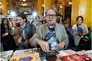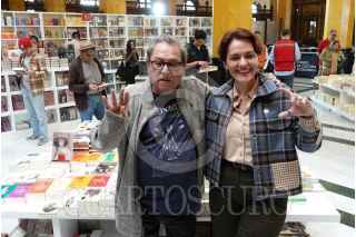 CIUDAD DE MÉXICO, 20FEBTERO2025.- Paco Ignacio Taibo II, director del Fondo de Cultura Económica, y Violeta Abreu González, directora del Servicio Postal Mexicano (Sepomex), durante la inauguración del tendido de libros “El Palacio Postal a Fondo” realizado en el Palacio Postal. FOTO: GRACIELA LÓPEZ/CUARTOSCURO.COM