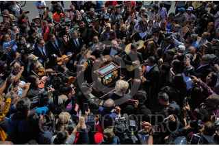 CIUDAD DE MÉXICO, 21FEBRERO2025.- Familiares y amigos de la cantautora Francisca Viveros Barradas, también conocida como "Paquita la del Barrio", le dieron el último adiós a los restos de la intérprete en la Plaza de Garibaldi. FOTO:ROGELIO MORALES/CUARTOSCURO.COM