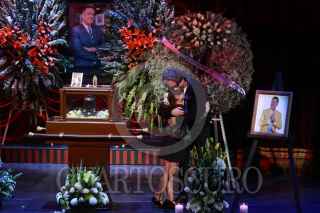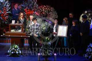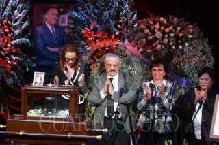 CIUDAD DE MÉXICO, 21FEBRERO2025. Se realizó un homenaje al conductor y también actor Daniel Bisogno en el escenario de Centro Cultural Teatro 2; donde se presenta la obra Lagunilla mi barrio, último proyecto en el que participó. Monica Castañeda, Pedro Sola, Pati Chapoy y parte del equipo del programa Ventaneando asistieron al homenaje. FOTO: EDGAR NEGRETE LIRA/CUARTOSCURO.COM
