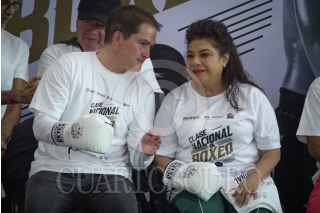 CIUDAD DE MÉXICO, 22FEBRERO2025.- Clara Brugada, jefa de gobierno, encabezó el inicio del programa “Clase Nacional, Boxeando por la Paz”, con el cual se busca que cada vez más capitalinos se acerquen a realizar actividad física y en concreto al deporte del boxeo, esto en la alcaldía Álvaro Obregón. FOTO:ROGELIO MORALES/CUARTOSCURO.COM