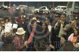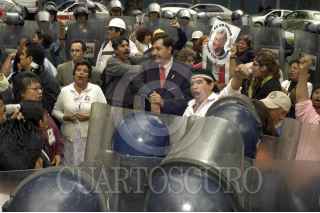 MÈXICO,D,F.,10OCTUBRE2007.- Gerardo Fernández Noroña Vocero del Partido de la Revolución democrática acudieron al un hotel polanco a manifestarse por la presencia de Felipe Calderon presidente de los Estados Unidos Mexicanos se encontraba en un evento FOTO:IVAN MENDEZ/CUARTOSCURO.COM