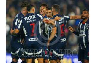 GUADALUPE, NUEVO LEÓN, 22FEBRERO2025.- Jugadores de los Rayados del Monterrey, festejan el gol ante el Atlético San Luis, en el estadio BBVA, partido correspondiente a la jornada 8 de la Clausura 2025 de la LIga Mx. Marcador Final: Monterrey: 3 - Atlético San Luis: 1. FOTO: GABRIELA PÉREZ MONTIEL / CUARTOSCURO.COM