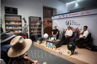 CIUDAD DE MÉXICO, 23FEBRERO2025.- Manuel Matus y Jaret León presentaron su libro la musa del Mezcal como parte de las actividades de la edición 46 de La Feria Internacional del Libro del Palacio de Minería (FILPM). FOTO: ANDREA MURCIA /CUARTOSCURO.COM