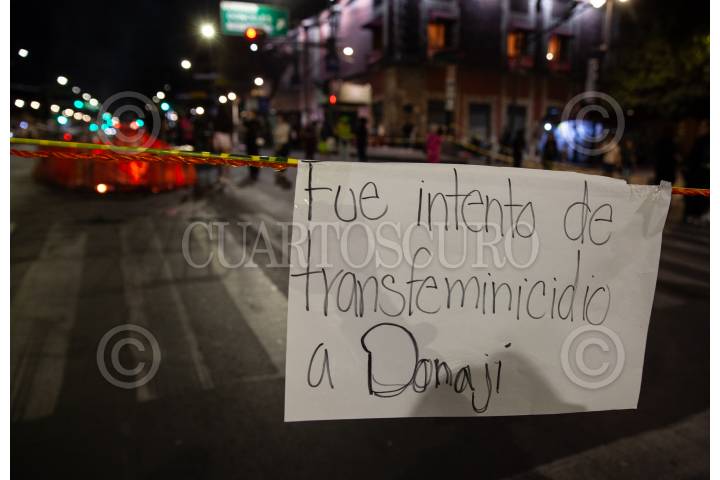 CIUDAD DE MÉXICO, 23FEBRERO2025.- Colectivas de mujeres que trabajan en comercio ambulante en las inmediaciones de la Alameda Central protestas deteniendo el tráfico de eje central para que se resuelva e investigue el supuesto intento de feminicidio esta tarde al querer impedir que trabajara Dana una mujer trans por parte de personal de la policía. FOTO: ANDREA MURCIA /CUARTOSCURO.COM