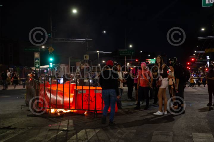 CIUDAD DE MÉXICO, 23FEBRERO2025.- Colectivas de mujeres que trabajan en comercio ambulante en las inmediaciones de la Alameda Central protestas deteniendo el tráfico de eje central para que se resuelva e investigue el supuesto intento de feminicidio esta tarde al querer impedir que trabajara Dana una mujer trans por parte de personal de la policía. FOTO: ANDREA MURCIA /CUARTOSCURO.COM