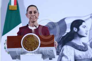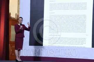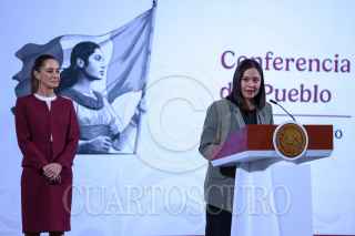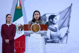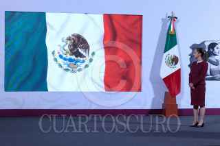 CIUDAD DE MÉXICO, 24FEBRERO2025.- Angélica Noemi Juárez Pérez, subsecretaría de Educación Básica, ofreció un recuento histórico de la bandera nacional, durante la mañanera. FOTO: MOISÉS PABLO/CUARTOSCURO.COM