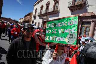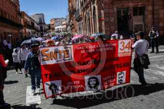 ZACATECAS, ZACATECAS, 24FEBRERO2025.- Miles de maestros del Sindicato Nacional de Trabajadores de la Educación sección 55; de la Coordinadora Nacional de Trabajadores de la Educación sección 34; y de Sindicato del Personal Académico de la Universidad Autónoma de Zacatecas; marcharon por la principales calles del centro de la ciudad como parte de la convocatoria “Marcha por la dignidad de los maestros” para exigir el pago de becas de hijos de maestros que el gobierno del estado adeuda de todo el 2024. FOTO: ADOLFO VLADIMIR /CUARTOSCURO.COM