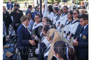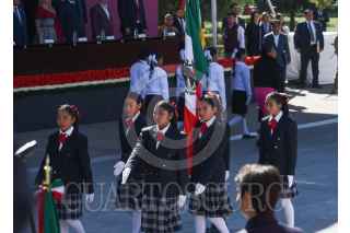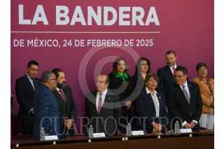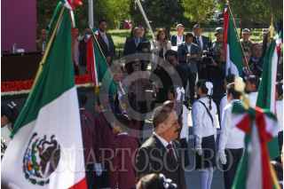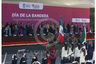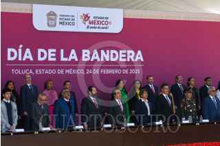 TOLUCA, ESTADO DE MÉXICO, 24FEBRERO2025.- Delfina Gómez Álvarez, Gobernadora del Estado de México encabezó la Ceremonia por el Día de la Bandera, abanderando escoltas de distintos niveles y acompañada por integrantes de su gabinete. FOTO: CRISANTA ESPINOSA AGUILAR /CUARTOSCURO.COM