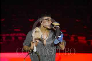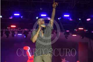CAMPECHE,CAMPECHE 24 DE FEBRERO. El cantante de reguetón " El Malilla", cuyo verdadero nombre es Fernando Hernández Flores, hizo vibrar a cientos de fans en el Domo del Jaguar en Campeche durante su presentación como artista invitado en la coronación de los Reyes del Carnaval del Instituto Campechano. FOTO: MICHAEL BALAM/CUARTOSCURO.COM