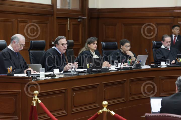 CIUDAD DE MÉXICO, 25FEBRERO2025.- El Pleno de la Suprema Corte de Justicia de la Nación (La Corte), al resolver una contradicción de criterios sustentada entre sus Salas, determinó que la interrupción del plazo de prescripción de las facultades de la autoridad para fincar responsabilidades implica detener la continuidad de su cómputo y reservar el tiempo que ha transcurrido para que, en su caso, se reanude por el lapso remanente. Al centro de la imagen los ministros Javier Laynez Potisek y Margarita Ríos Farjat. FOTO: SCJN/CUARTOSCURO.COM