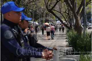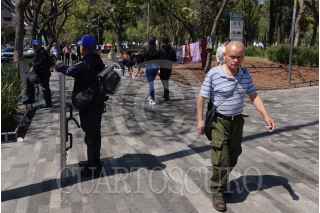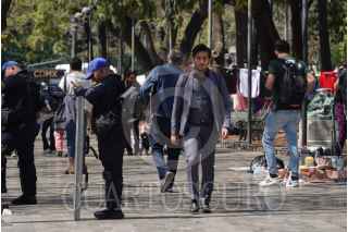 CIUDAD DE MÉXICO, 24FEBRERO2025.- Elementos de la Secretaria de Seguridad Ciudadana mantienen la vigilancia en pocos puntos de la Alameda Central luego de que ayer, un grupo de policías agredió a Donají, una comerciante trans en una de las jardineras de este lugar. Diversos colectivos se han manifestado para exigir justicia por Donají como un intento de transfeminicidio y los Derechos Humanos de las personas trans. FOTO: GRACIELA LÓPEZ/CUARTOSCURO.COM