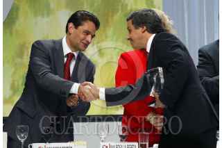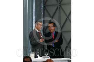 MÉXICO, D.F. 10OCTUBRE2007.- El senador Josè Gonzàlez Morfìn y Luis Carlos Ugalde, titular del IFE al tèrmino de la comida con motivo de la semana nacional de radio y televisión que encabezó el presidente Felipe Calderón. FOTO: PAOLA HIDALGO/CUARTOSCURO.COM