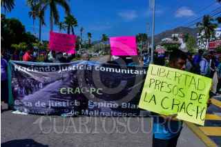 ACAPULCO, GUERRERO, 24FEBRERO2025.- Integrantes de la Policía Comunitaria CRAC PC bloquearon el boulevard de Las Naciones frente a las intenciones del Poder Judicial de la Federación, a muy cerca de la Arena GNP en donde hoy se inaugurara el torneo de Mextenis, los comunitarios exigieron la liberación de policías detenidos el pasado 16 de febrero. FOTO: CARLOS ALBERTO CARBAJAL/CUARTOSCURO.COM